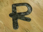 The earliest version of each letter character was cast in clear polyester resin. These pictographic characters are "transparent" to our contemporary writing. The intermediate versions (one or two, depending on the letter) were also cast in resin, but this time with bits of concrete "rocks" partially filling the routed-out space. The final, familiar latin forms are made with solid concrete.